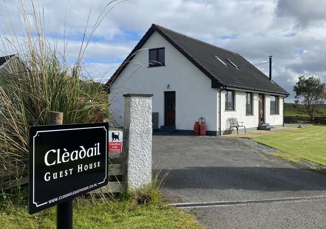 The name of the Guest House, Cleadail, is also the name of the main settlement on the Isle of Eigg. It is from the Gaelic for “Cliff Valley”. Nestled below Beinn a’ Chearcaill and looking out over Lock Snizort and beyond to the Outer Hebrides, we thought it perfectly describes the location of the Guest House.